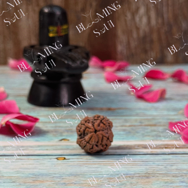 The 4 Mukhi Rudraksha, also called Chatur Mukhi Rudraksha, is a sacred bead blessed by Lord Brahma, the creator of the universe and the source of wisdom and knowledge. It has four natural lines or faces on its surface and is associated with Mercury (Budh), the planet influencing intellect, communication, and creativity.